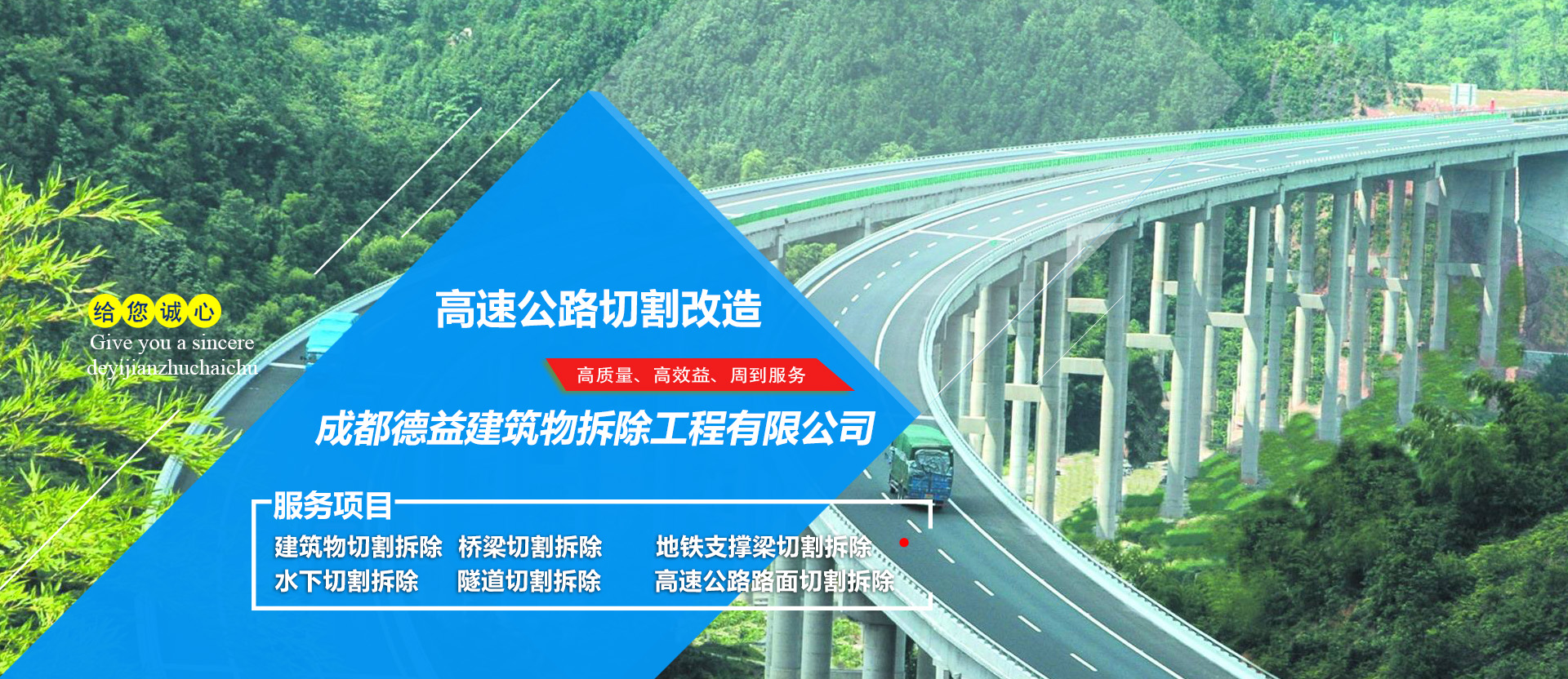 成都德益建筑物拆除工程有限公司是一家專業(yè)混凝土切割拆除,有著多年的混凝土切割拆除施工經(jīng)驗。擁有國內(nèi)外******機械設(shè)備。立足成都,面向全國施工,承接大小切割工程,建筑結(jié)構(gòu)加固工程。專業(yè)承接建筑物切割拆除、橋梁切割拆除、地鐵支撐梁切割拆除、水下切割拆除、隧道切割拆除、高速公路路面切割拆除等工程的鋼筋混凝土切割施工,建立以來一直秉持安全高效的宗旨,在專業(yè)混凝土切割拆除施工領(lǐng)域建立了******的口碑。 一直憑借環(huán)保作業(yè),安全施工,收費合理,誠信服務(wù)立足于全國建筑物切割拆除施工行業(yè)。我們與中鐵集團、中國路橋....